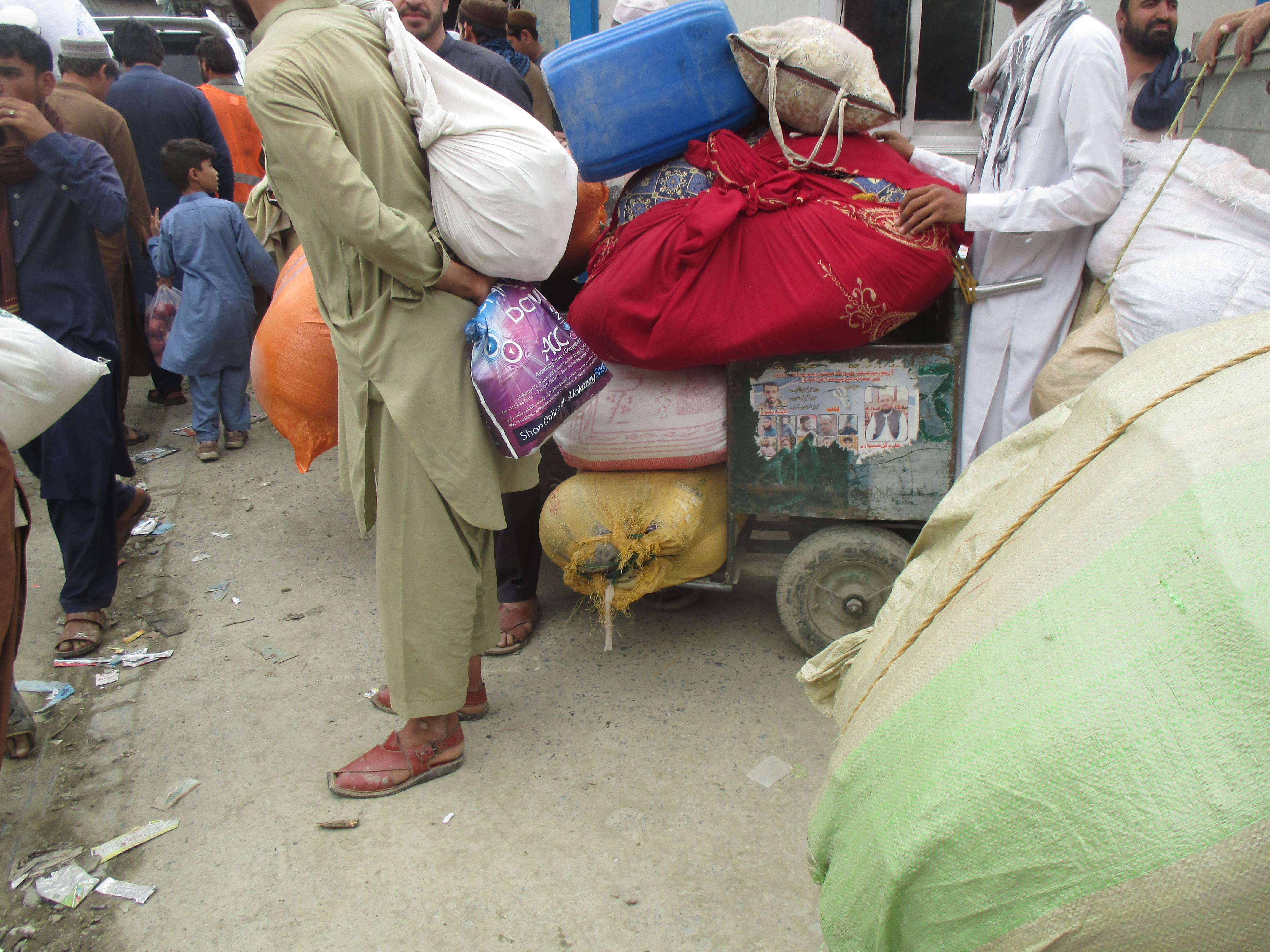 Afghan refugees carry their belongings as they prepare to leave Pakistan. Thousands of refugees have left for Afghanistan from the Torkham border ahead of the November 1 deadline. Photo by Somaiyah Hafeez.