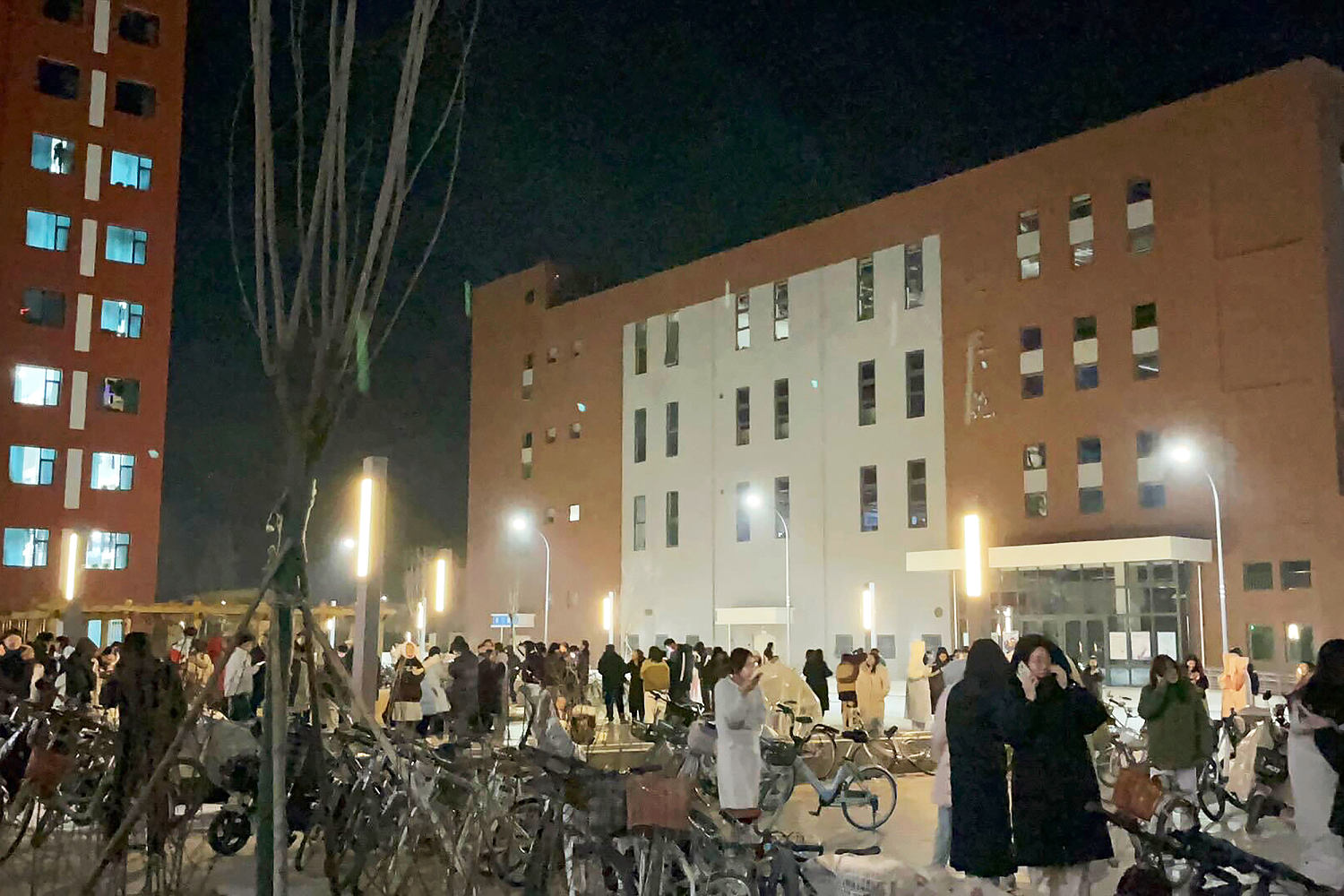 University students in Lanzhou rushed out of their dorms, according to a social media post that had images showing young people hastily leaving a building and standing outside. Many wore only their pajamas on a cold winter night, said Wang Xi, a student at Lanzhou University who made the post.