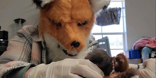 WATCH: Orphan fox gets fed by welfare worker wearing fox mask