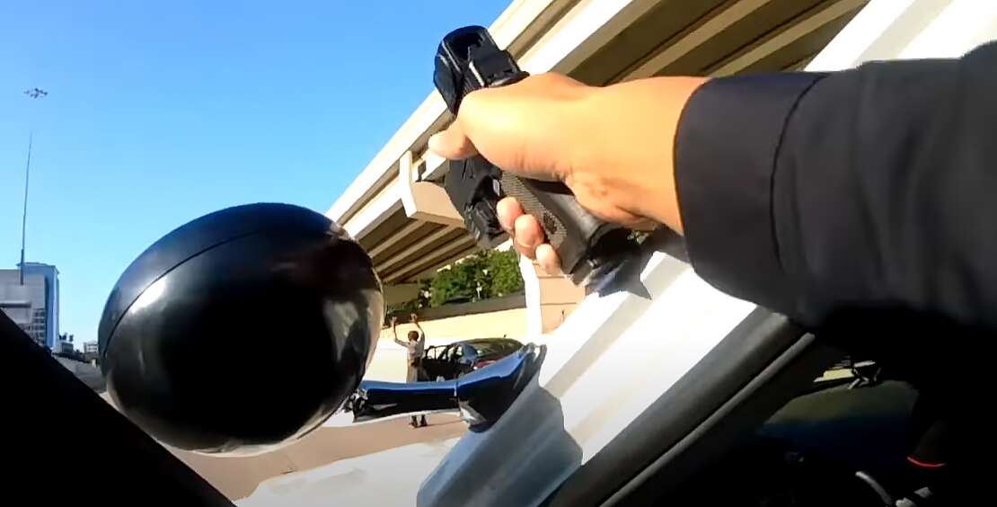 Body camera footage shows a different officer informing another officer — who still had his gun pointed toward the car with the husband and nephew inside — of the mistake. The officers then put their guns down, and four officers approach the car, none of whom made the error.