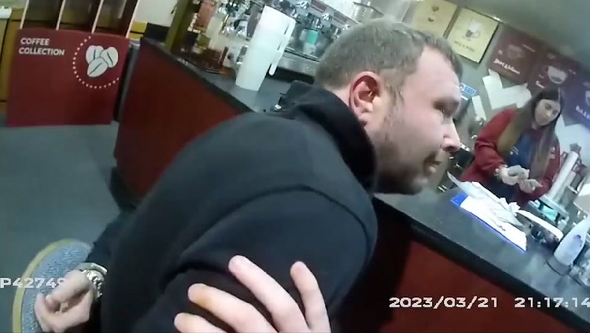 A businessman who has been convicted of manslaughter after driving over a pedestrian broke down in tears as he was arrested in a Costa Coffee.