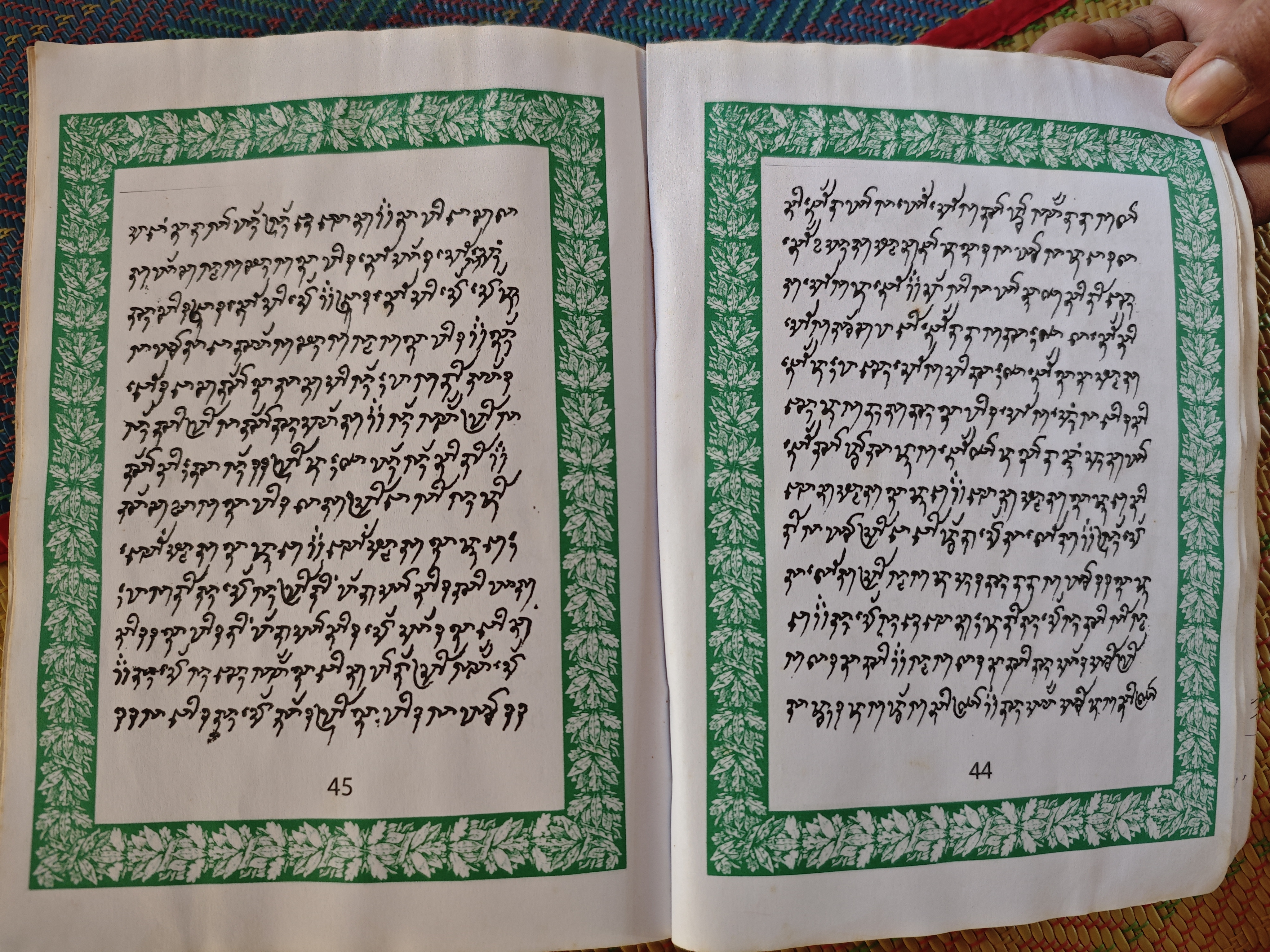 When presenting the book, Math Sa proudly flipped through the pages, written in swirling Cham script, which he said his ancestors used to painstakingly copy by hand, but which can now be photocopied if they can raise the funds. The edition he showed reporters was printed with help by the U.S. Embassy, which distributed copies to all Kan Imam San mosques in 2011. He told reporters that these books had a big, positive impact on the younger Kan Imam San, as it allowed them to interact with their traditions and made it much easier to help them with their literacy.