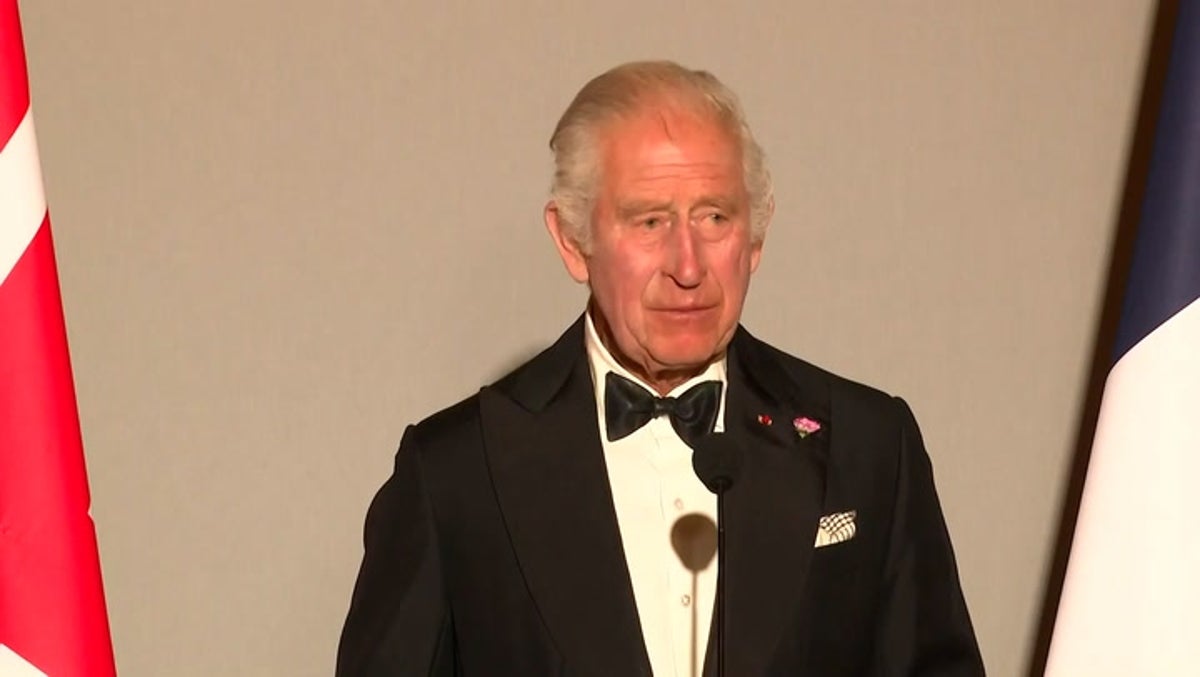 King Charles III made a speech in French as he attended a lavish banquet at the Palace of Versailles during his state visit.