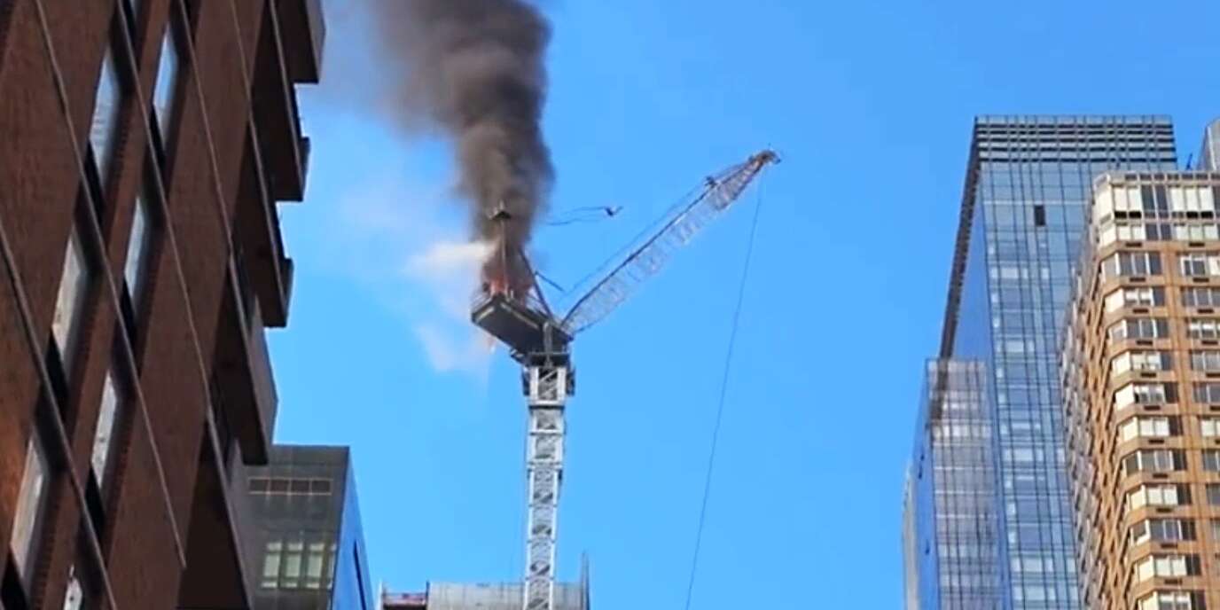 Video posted to social media showed the top part of a crane collapse, hit a building across the street and then swing back to hit the building under construction.