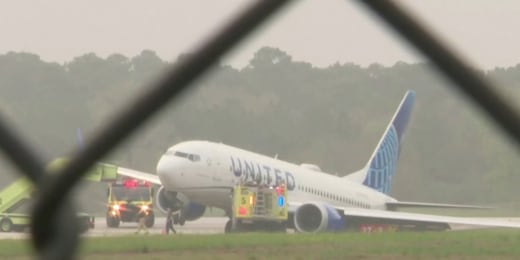Runway shut down after United plane slides into grass