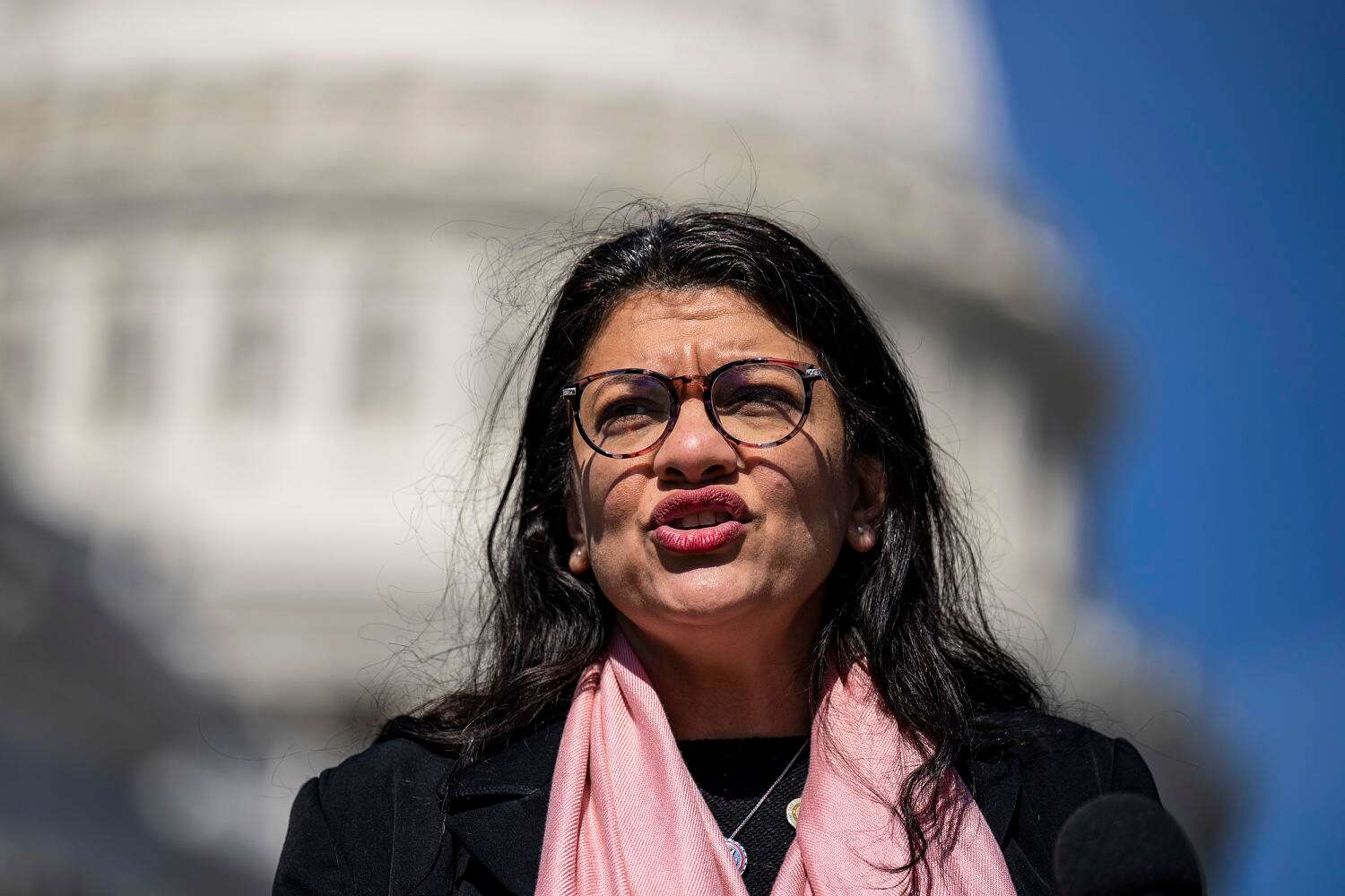Tlaib didn’t attend the protest indoors, a source familiar with the matter previously told NBC News, but she delivered remarks at a rally with the demonstrators outside the Capitol.