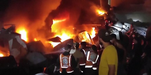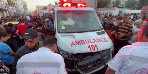 Scenes outside Gaza hospital after Israel strikes ambulance near entrance
