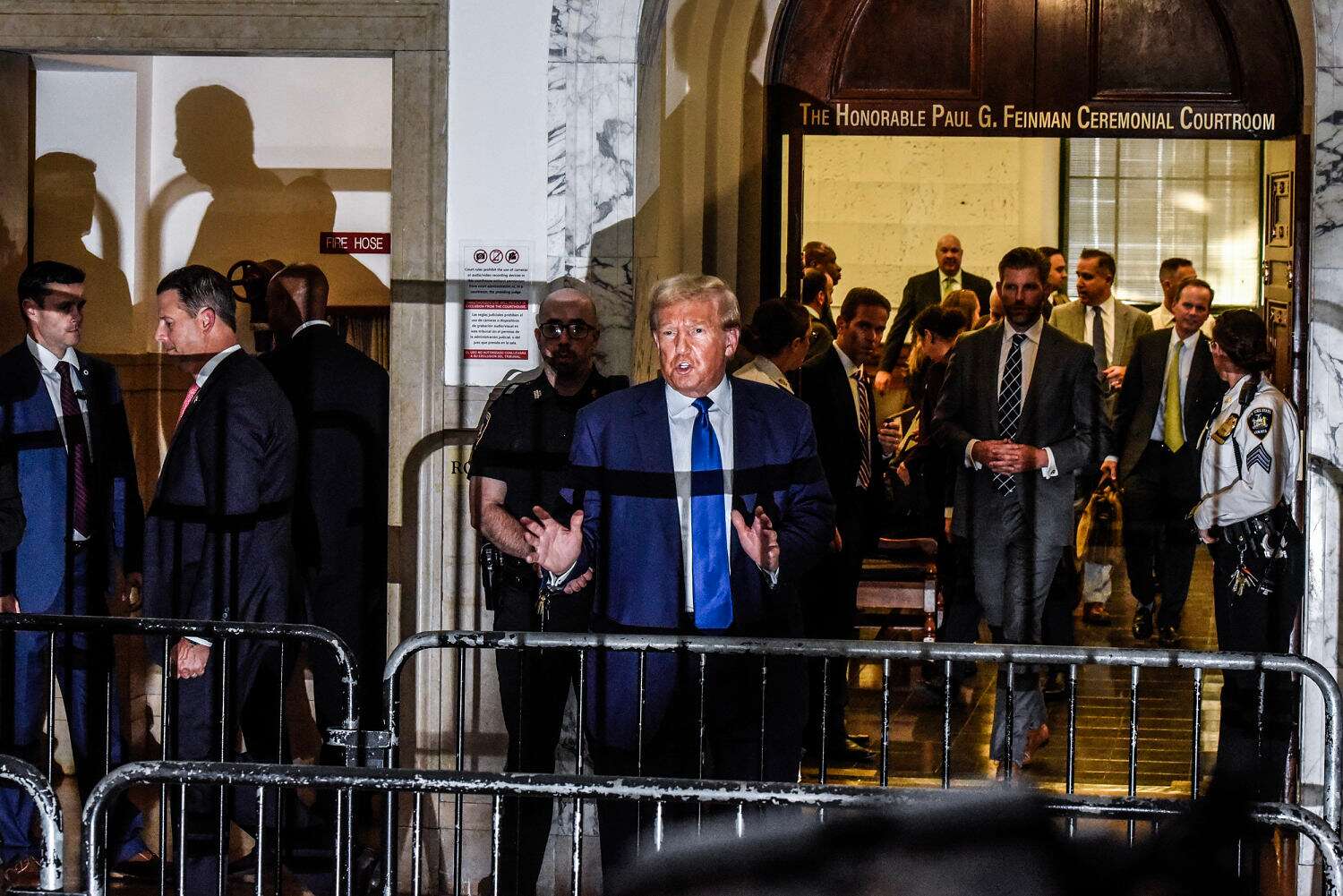 “I know he’s very fired up to be here and he thinks this is one of the most incredible injustices he’s ever seen, and it truly is,” his son and fellow defendant Eric Trump told reporters Friday, after he finished testifying in the $250 million civil fraud trial.