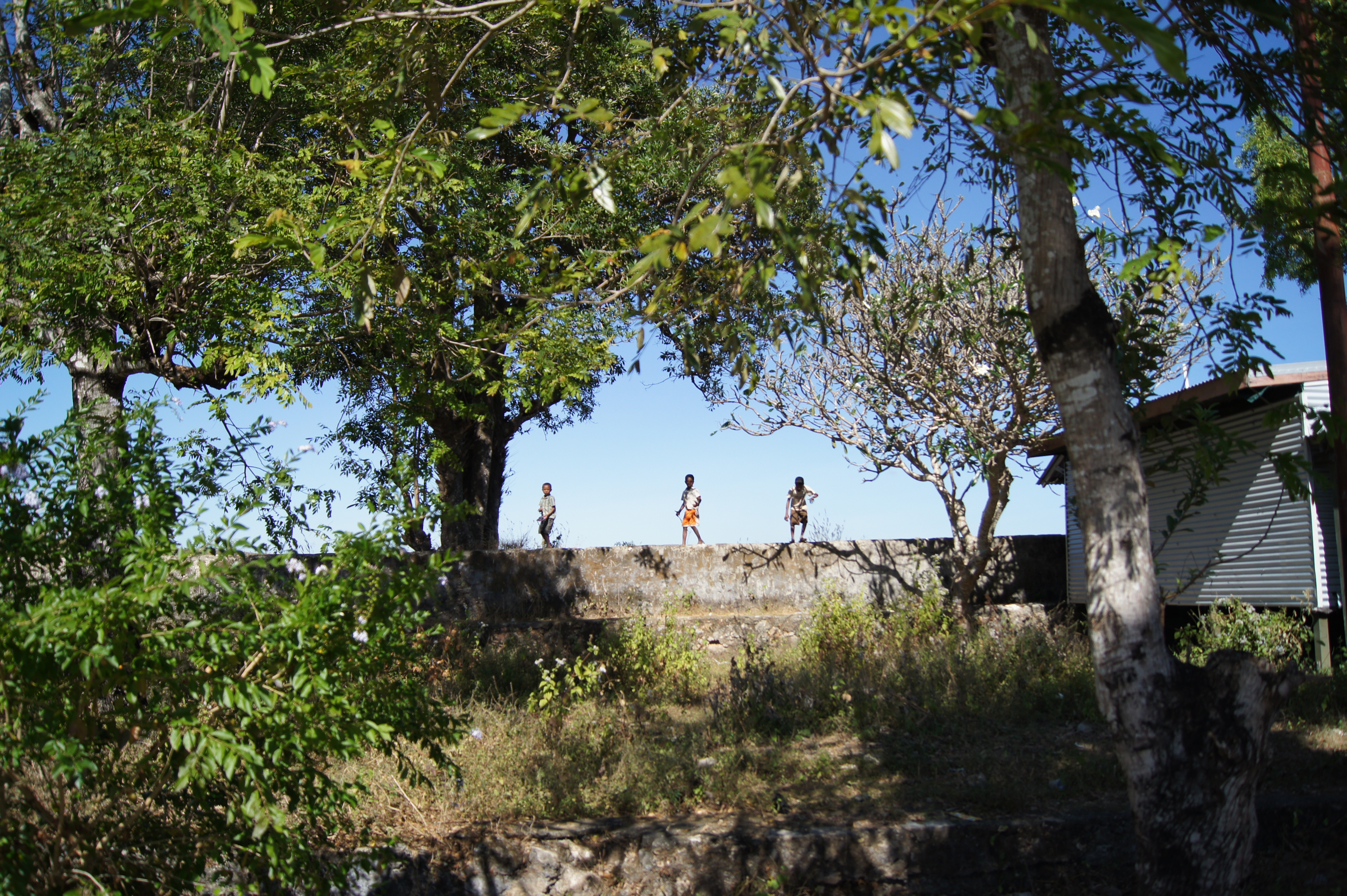 Children stand on a wall from which the Balibo Five spotted Indonesian troops landing, witnessing incursions months ahead of the invasion. Photo by Klas Lundström. Photo by Klas Lundström.