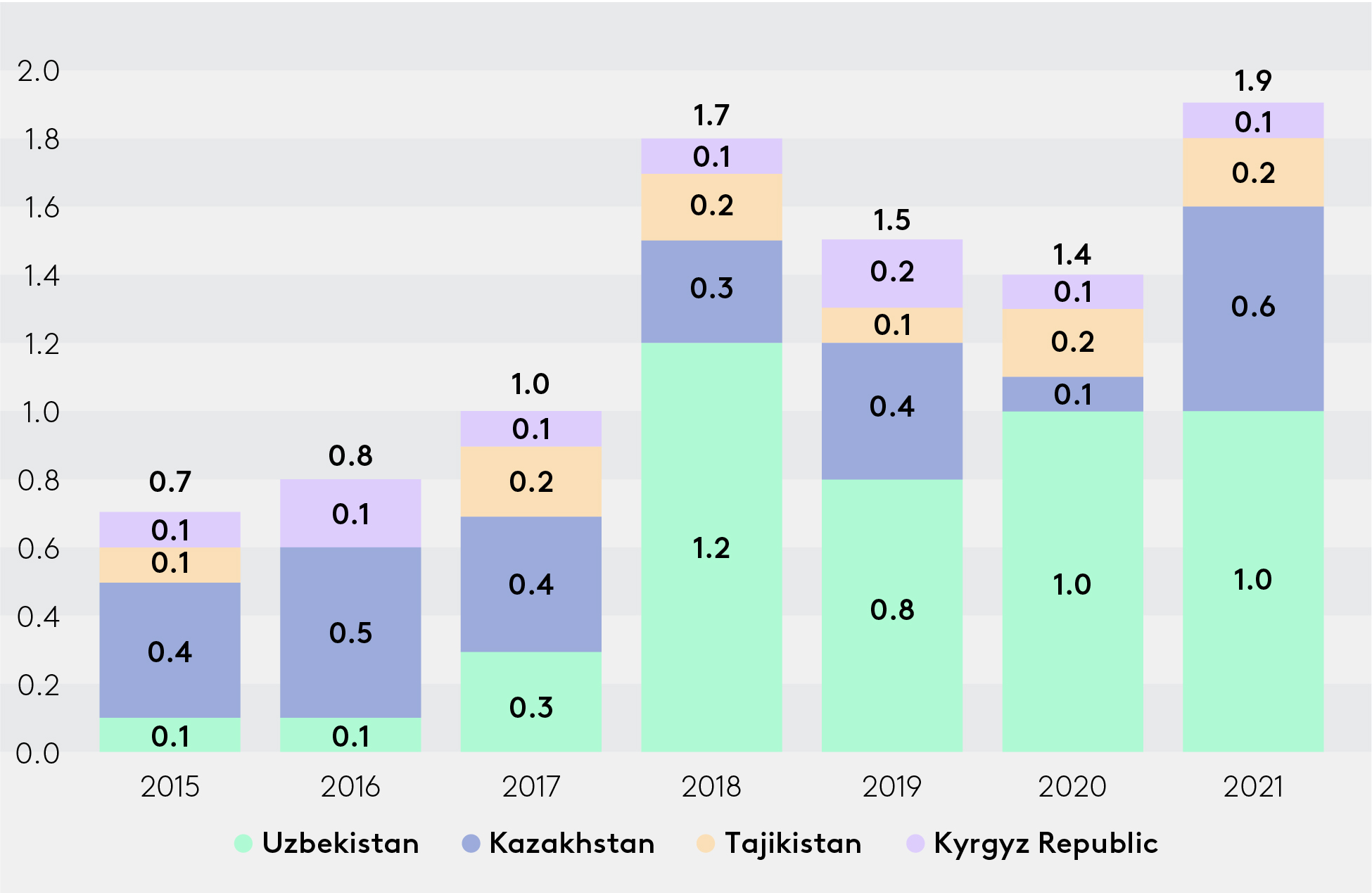 MDBs’ total climate finance of Central Asian countries, $ billion