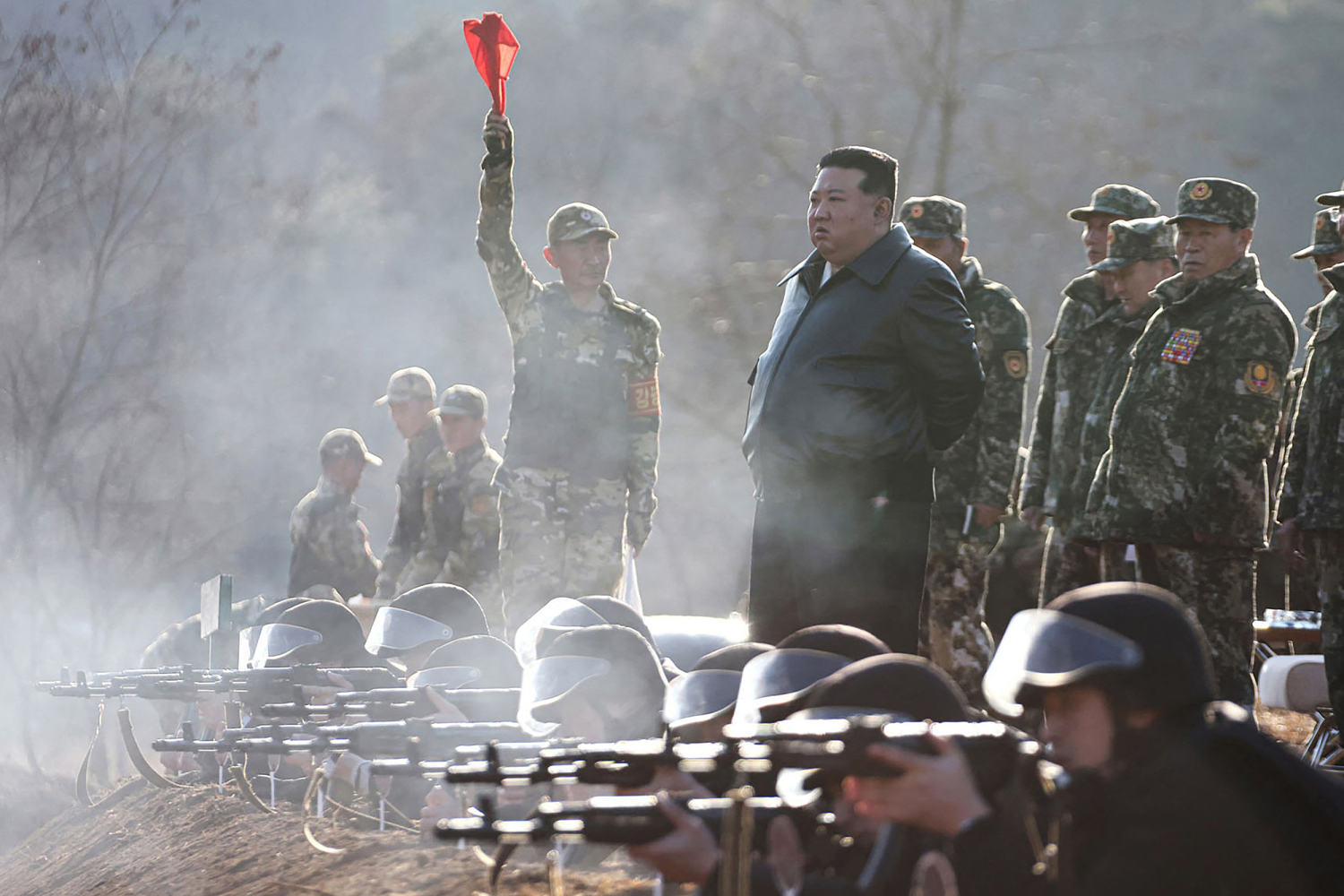 It said Kim guided maneuvers of military units at the site but didn’t elaborate. State media photos showed Kim wearing a black leather jacket and standing in position to shoot a rifle and standing near soldiers who were lying on the ground and aiming their rifles.