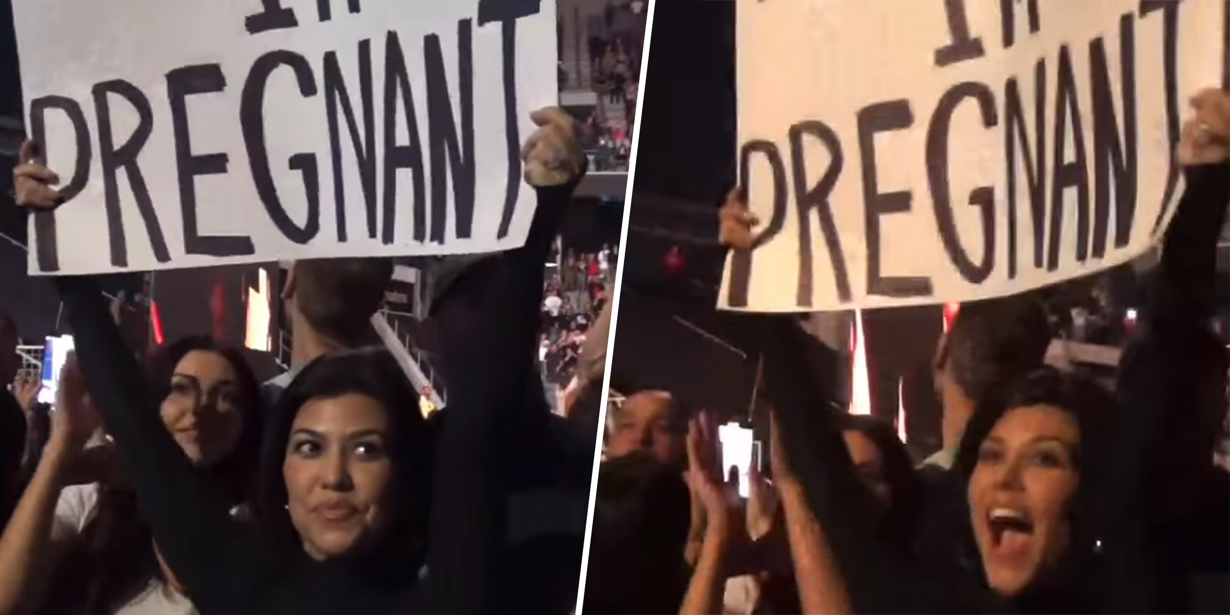 On Friday, Kardashian Barker shared video footage from a Blink-182 concert where she held up a sign that read, “Travis I’m pregnant,” from the audience.