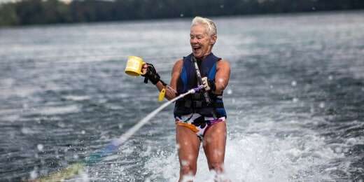 Fan celebrates 70th birthday waterskiing with Sunday Mug in hand