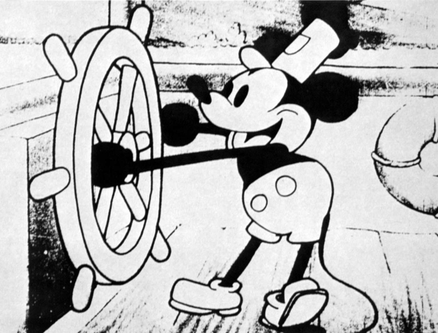 1928’s “Steamboat Willie” and “Plane Crazy” were the first two Walt Disney Animation releases to feature Mickey and Minnie Mouse, and the former was the first moving picture synced to sound. The characters were first protected under U.S. copyright law for 50 years, then Disney campaigned for and received extensions.