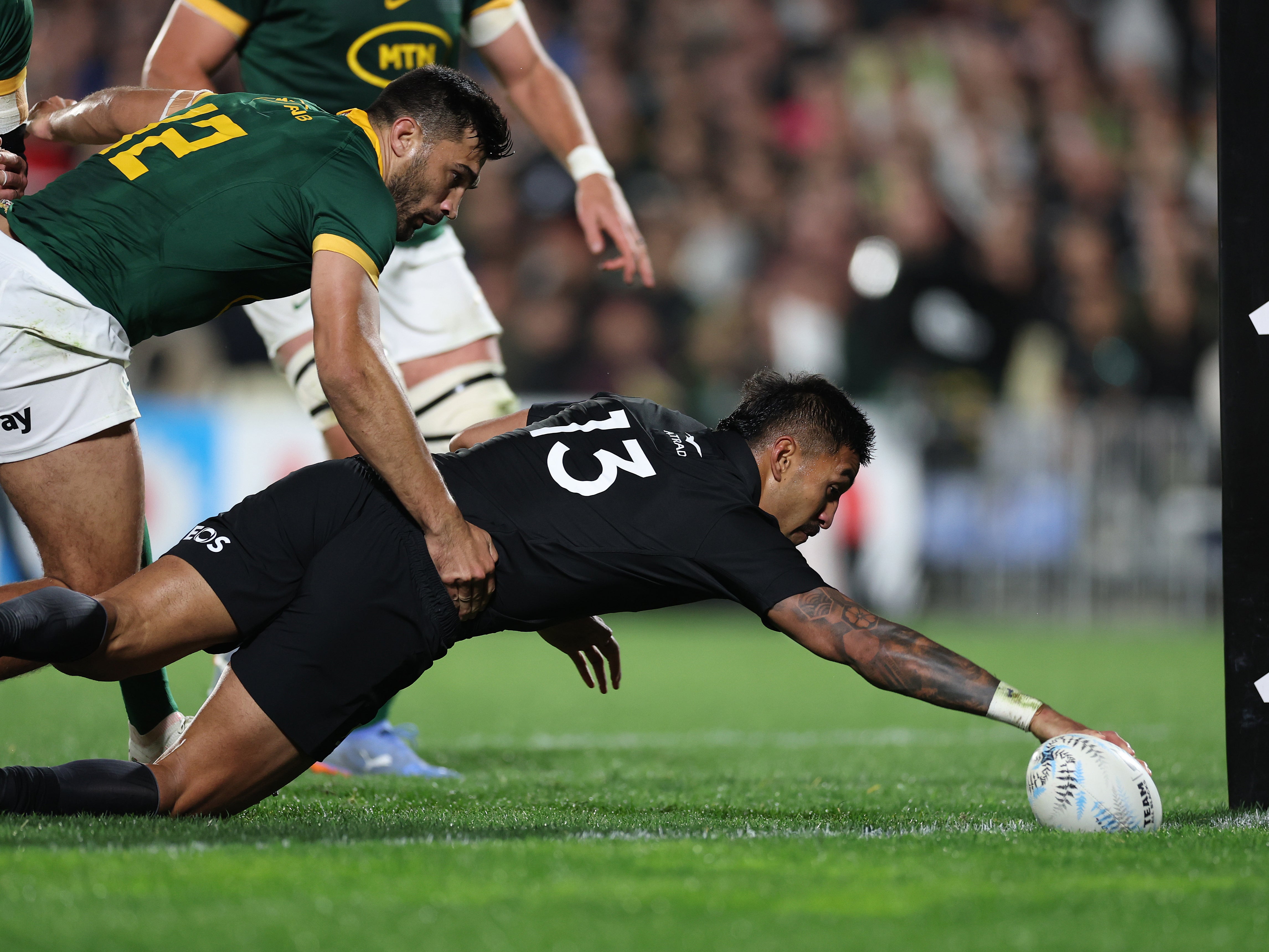 Simple as you like for the fly-half, orchestrating things brilliantly tonight and capping his performance with a score. The scrum sets stable foundations and Ardie Savea has the freedom of Auckland as he exits, angling to the blindside. He passes early to Mo’unga, who rather easily gets to Damian Willemse’s outside and slides over with a smile.
