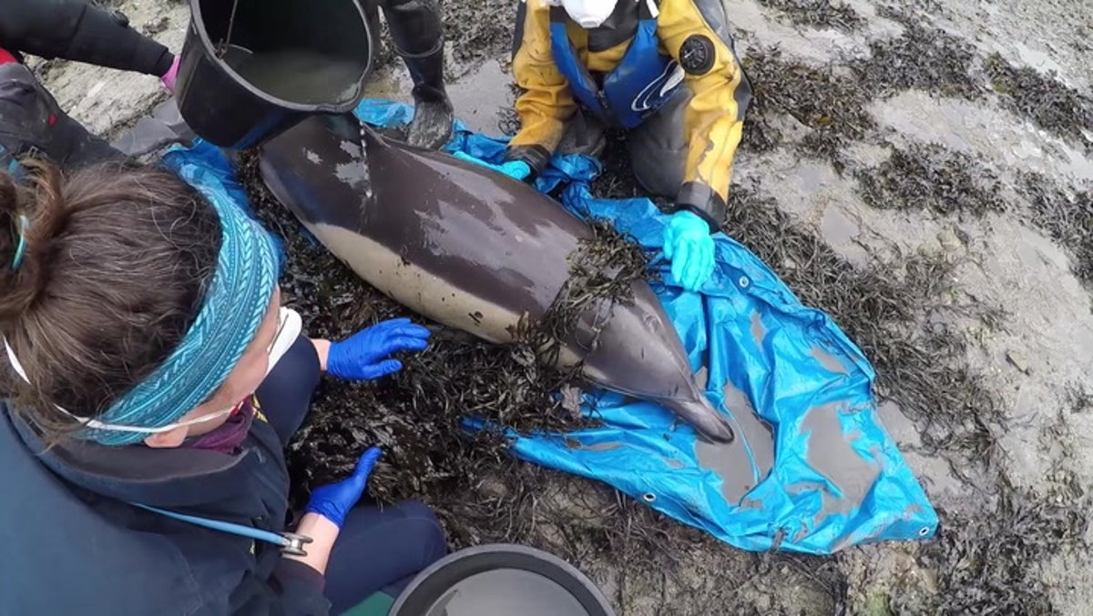 The dolphin soon became stranded and fell onto her side, submerging her blowhole.