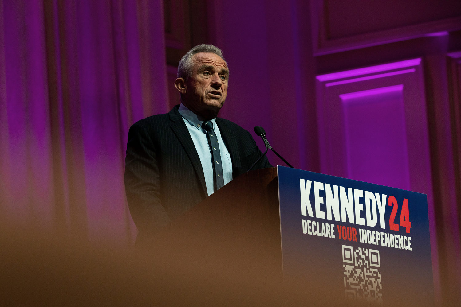 The ad featured pictures of Robert F. Kennedy Jr. testifying in front of Congress and skiing, alongside the words “vote independent.”