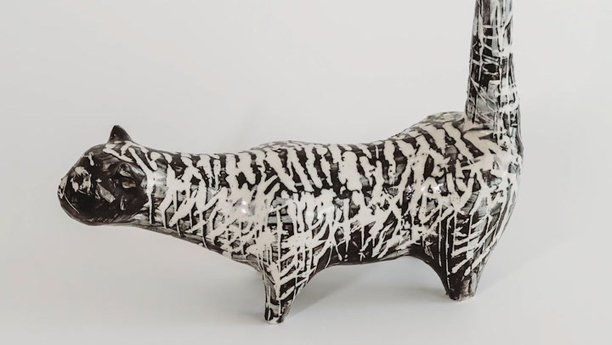 The cat sculpture, believed to be Hockney’s first ceramic creation, fetched £111,875 at Stacey’s Auctioneers & Valuers.