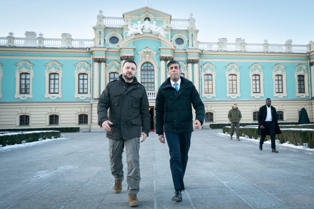 Rishi Sunak arrived in Kyiv for a surprise visit to meet Volodymyr Zelensky on Friday 12 January, as the UK announced it will provide £2.5 billion in military aid to Ukraine over the coming year.