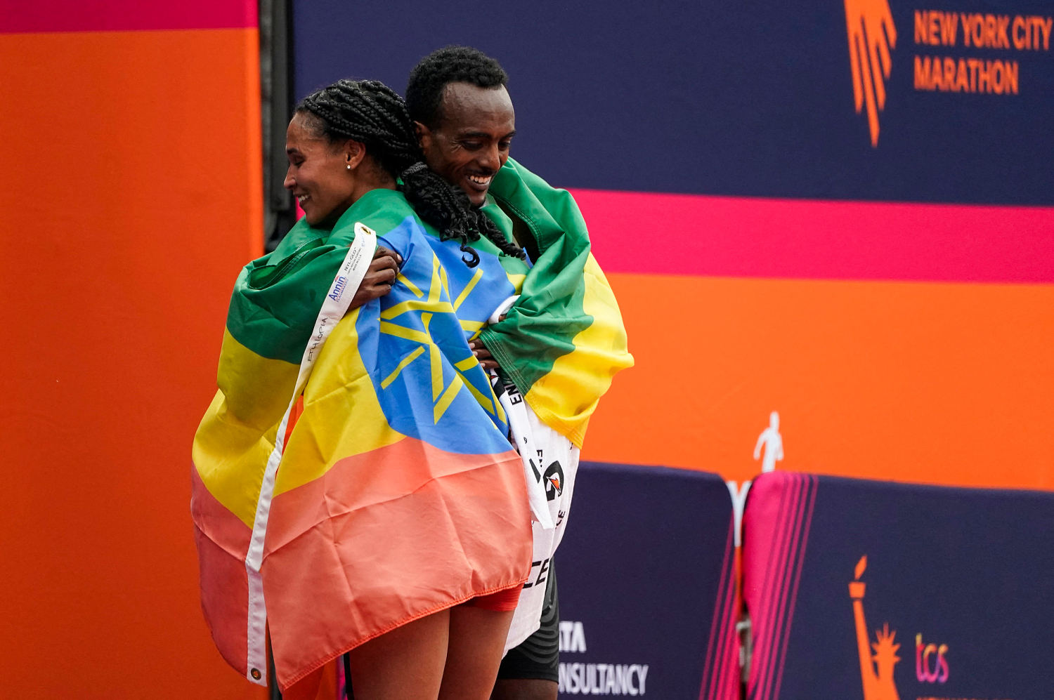 The men’s and women’s winners finished within a few minutes of each other. About an hour earlier, Marcel Hug won the men’s wheelchair race, finishing a few seconds short of his own course record by finishing in 1:25.29. It was the Swiss star’s record-extending sixth NYC Marathon victory.