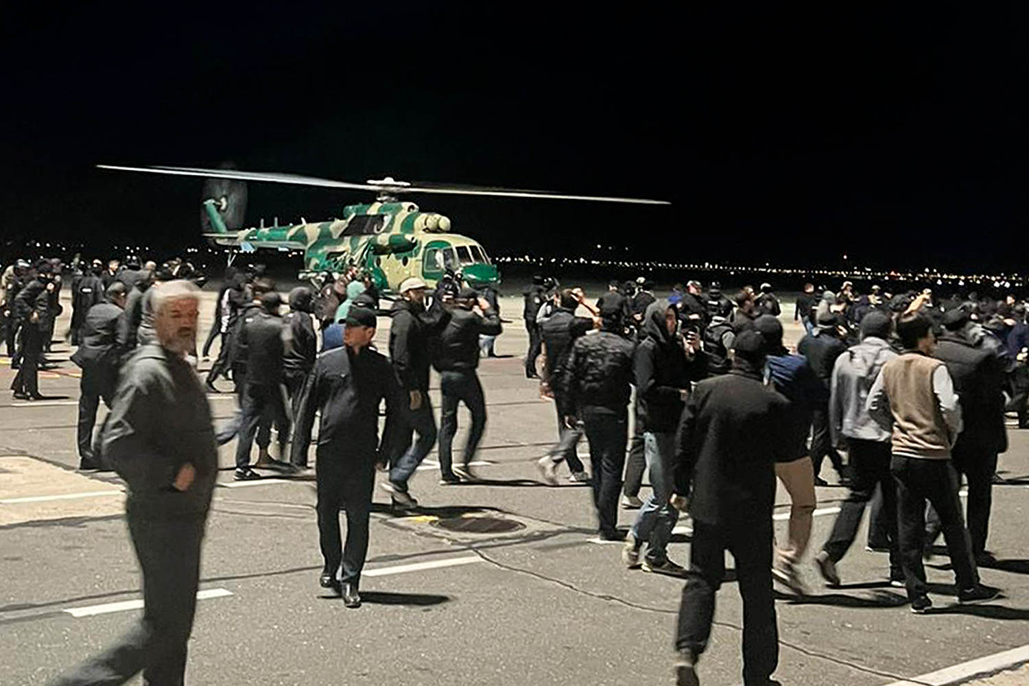 On Sunday, hundreds of protesters broke into Makhachkala Uytash airport in Dagestan, a republic in southern Russia near the Caspian Sea, and onto a runway to meet a flight arriving from Tel Aviv. Many shouted “Allahu akbar,” a common Muslim refrain meaning “God is great,” and waved Palestinian flags, according to videos verified by NBC News.