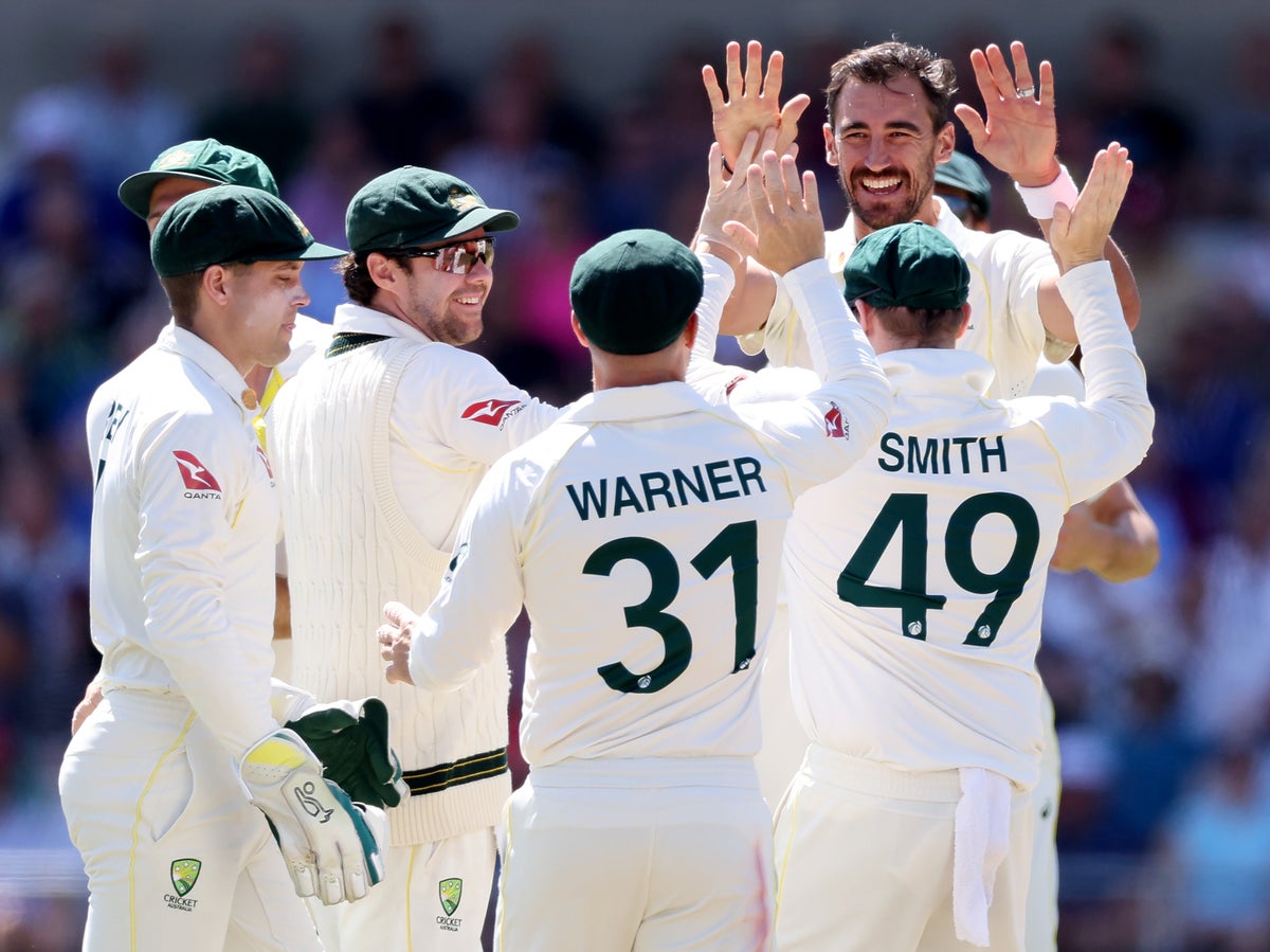 But Mitchell Marsh met fire with fire, producing a magnificent run-a-ball hundred to rescue Australia after four early wickets. The all-rounder’s ton was the fastest by an Australian on English soil since Victor Trumper in 1902, but his dismissal on the stroke of tea precipitated an extraordinary collapse of six for 23 as Wood tore through the lower order.
