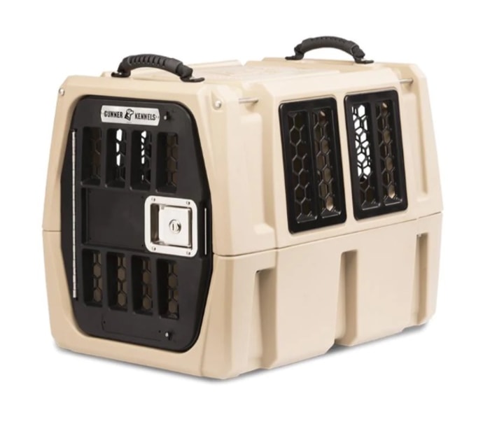 This crate earned a 5-star safety rating from the CPS in both the crate and carrier class (the only product to earn a dual certification), and it’s a favorite among our experts. The crate has a thick exterior layer for impact protection, which keeps your pet safe if there’s a crash or a fall, according to the brand. It also has a reversible door design that lets you open the crate from either side. The door also has an aluminum frame that won’t pop open in the middle of a flight, according to the brand. It comes in four sizes — small, medium, intermediate and large — and Gunner offers a size guide that gives recommendations based on your dog’s weight and length.
