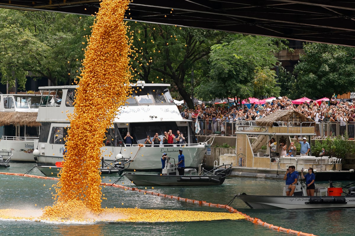 Thousands of rubber ducks flooded the Chicago River on 10 August for the annual Chicago Ducky Derby.