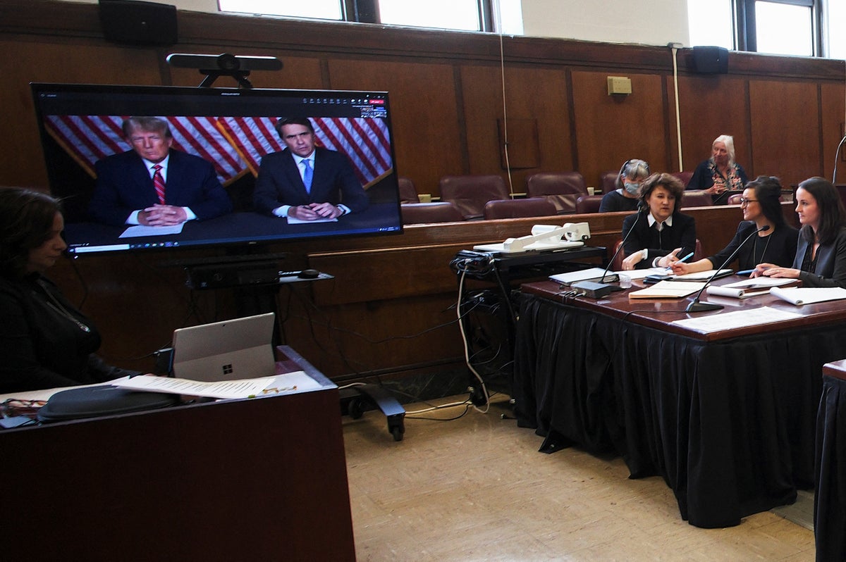 Frustrated Trump waves hands in virtual court appearance as trial date set