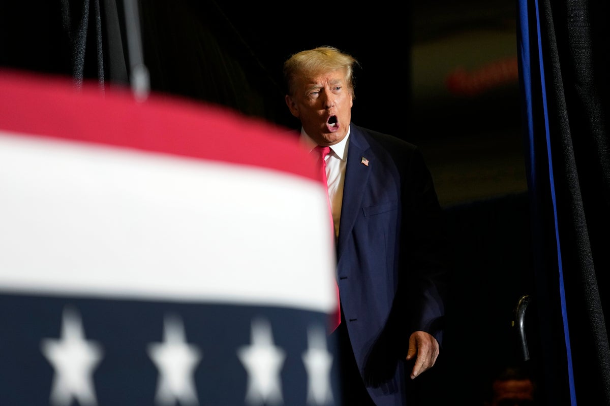 Former President Donald Trump arrives at a rally in Ottumwa, Iowa, on Sunday