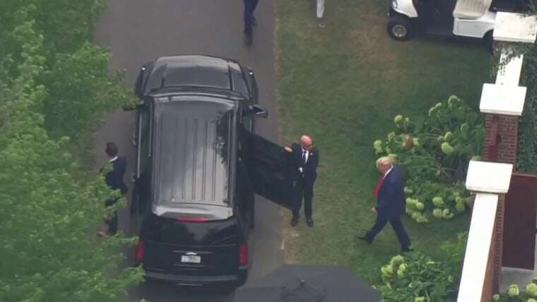 He entered a car and his motorcade departed just after 3 p.m. ET.