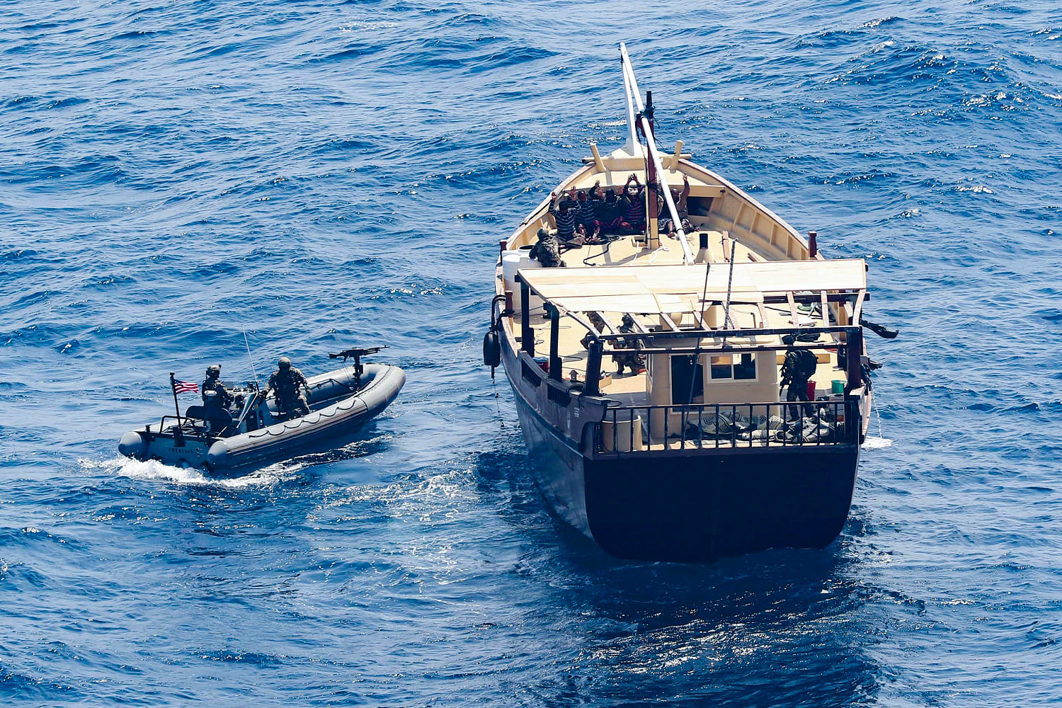 The team, attached to the Fifth Fleet, based in Bahrain, were on board the USS Lewis B. Puller, which the Navy describes as a “mobile sea base.” They identified a small boat, known as a dhow, that was not flagged to any country and had no paperwork so decided to board it, the three officials said.