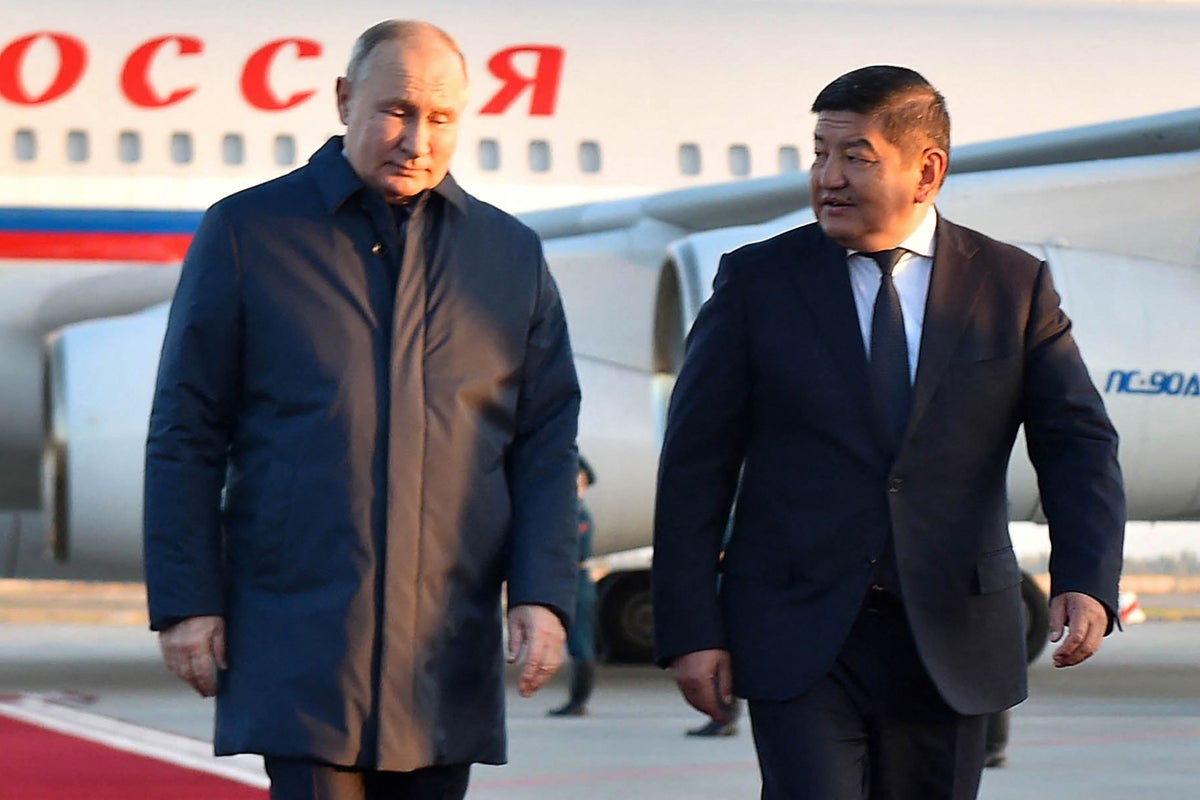 Earlier, Vladimir Putin arrived in Kyrgyzstan and is meeting Kyrgyz president Sadyr Zhaparov – his first time abroad since the International Criminal Court issued an arrest warrant for him in March over the deportation of children from Ukraine. The Kremlin has denied these accusations.