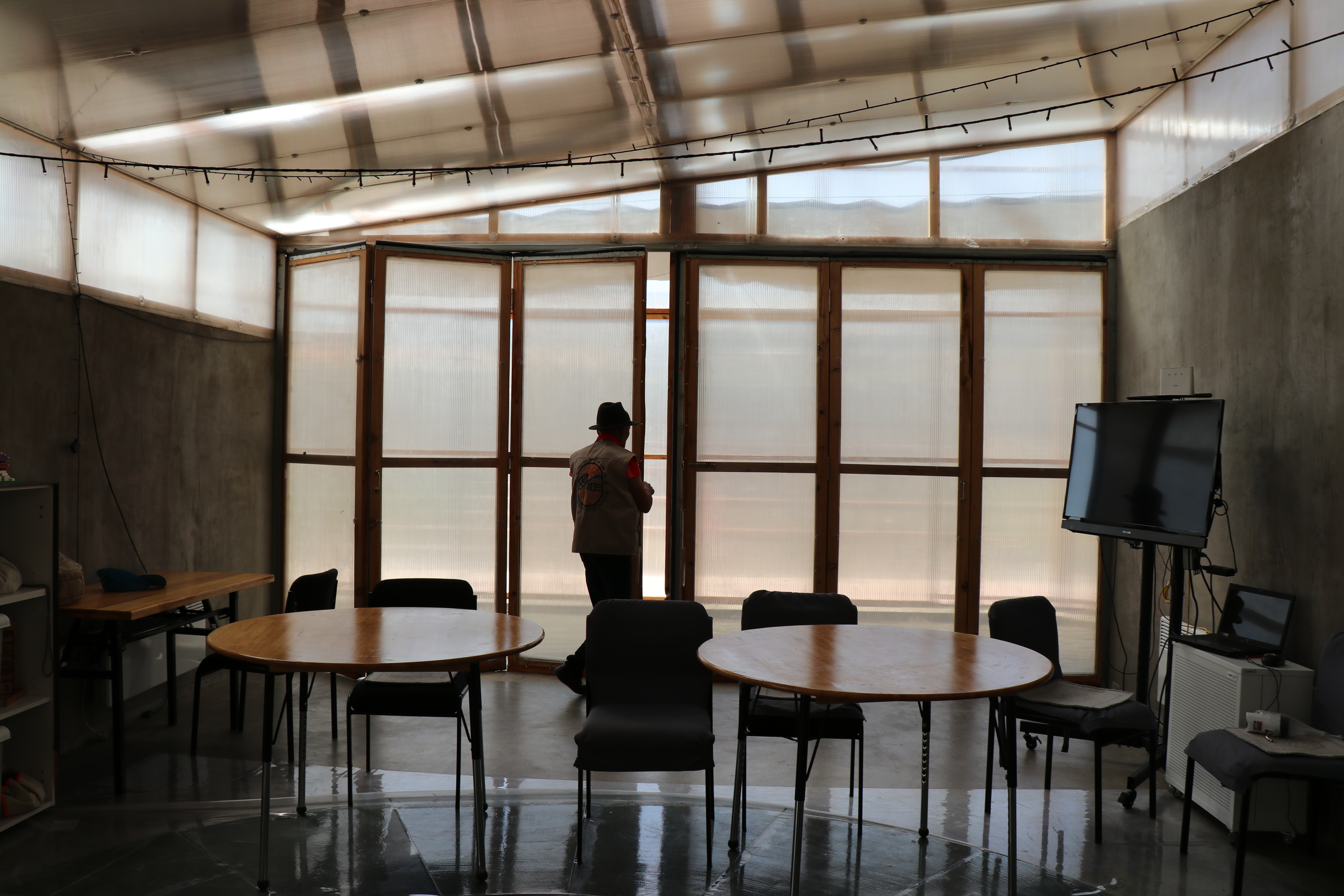 “We heat the space with electrical heaters in the winter to show our community members that an alternative heating system to coal exists,” said Azbayar. “We have shields on the roof in the summer to reflect back the sun – otherwise it gets super hot in here, which proves to us the building is doing its job.”