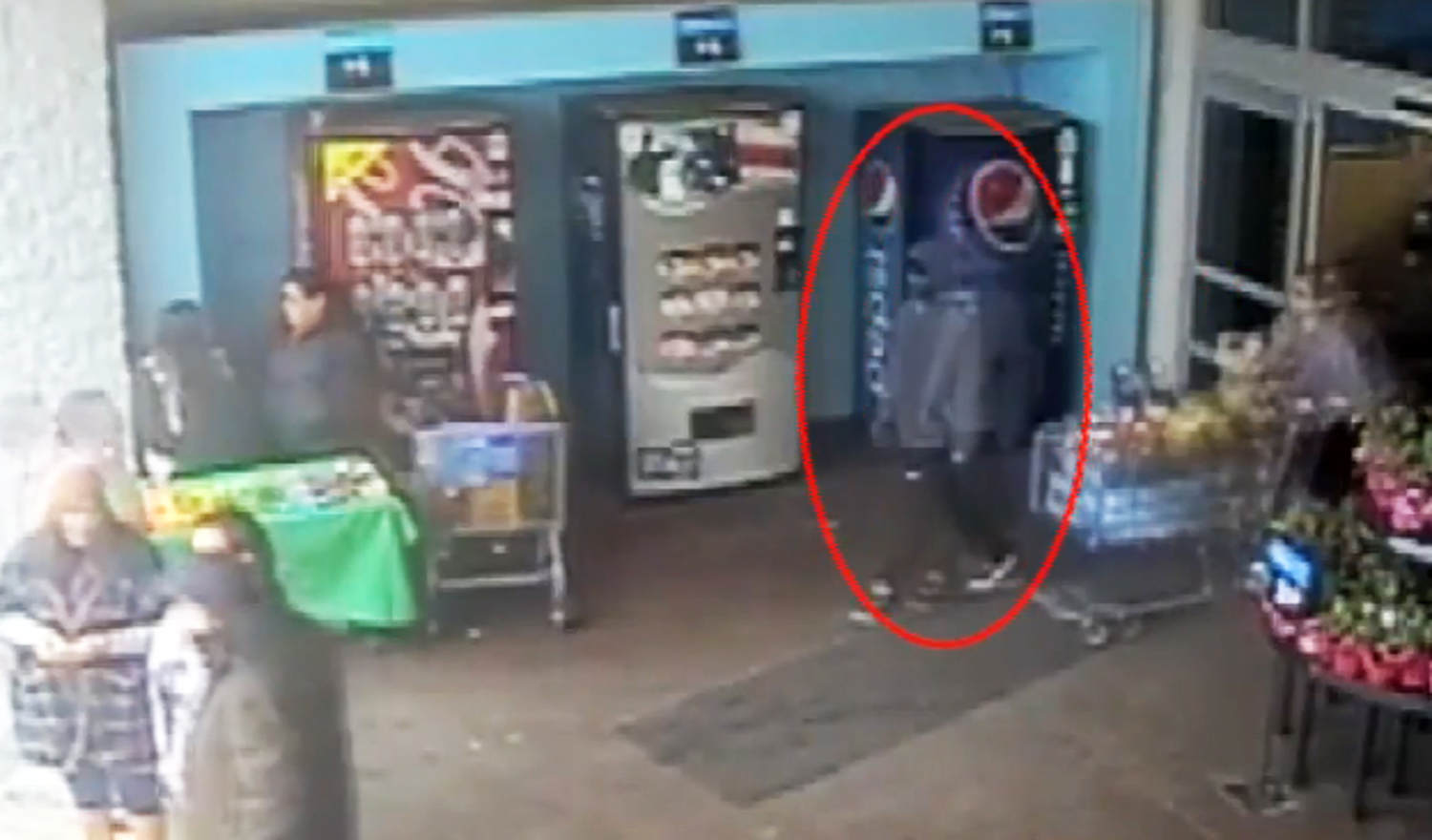In the video, a man is seen walking out of the Walmart store on the 9500 block of Clifford Street at about 2 p.m. on Sunday, Feb. 11, and grabbing a bag from behind the table before sprinting into the parking lot.