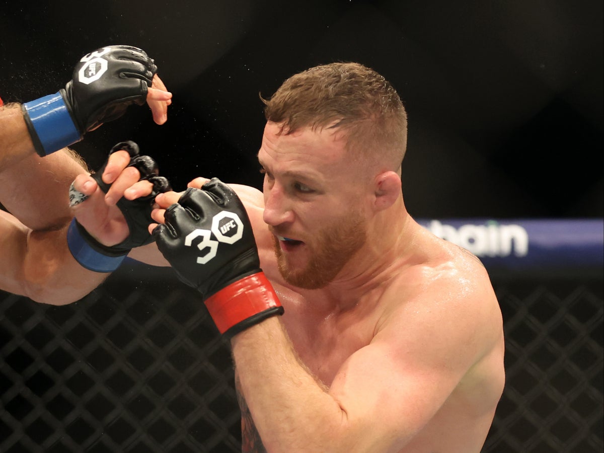 Justin Gaethje (left) narrowly outpointed Rafael Fiziev in his most recent fight